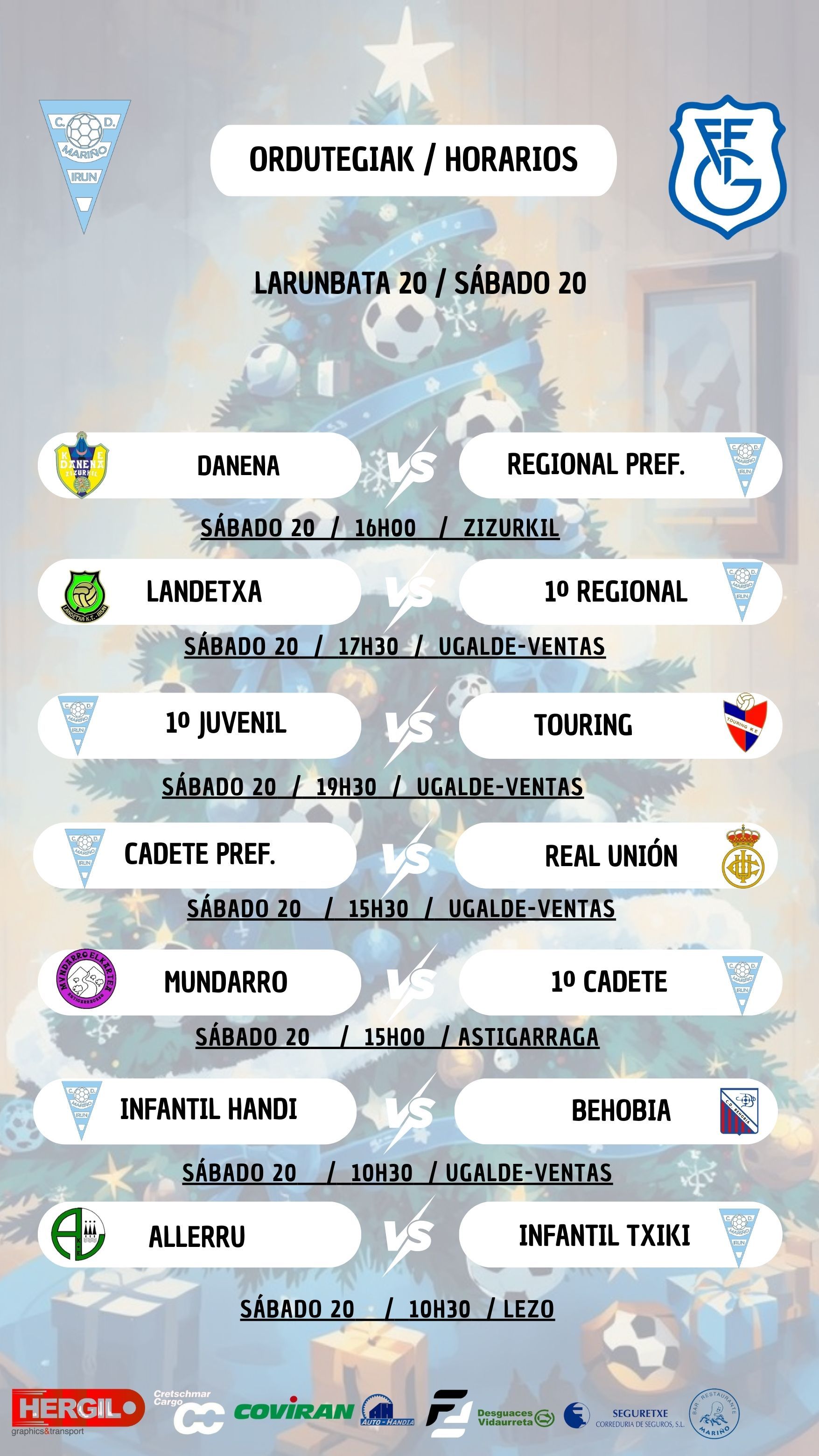DESDE EL CLUB DEPORTIVO MARIÑO QUEREMOS DESEAROS FELICES FIESTAS. TODO LO QUE HEMOS HECHO A LO LARGO DEL AÑO NO HABÍA SIDO POSIBLE SIN EL APOYO Y EL COMPROMISO DE LOS ENTRENADORES, LA DIRECTIVA, LOS DELEGADOS, LOS JUGADORES, LAS FAMILIAS Y TODA NUESTRA AFICIÓN. GRACIAS POR ESTAR SIEMPRE, POR EMPUJAR EN LOS MOMENTOS DIFÍCILES Y POR CREER EN ESTE PROYECTO. JUNTOS ESTAMOS CONSTRUYENDO EL FUTURO DEL CLUB.