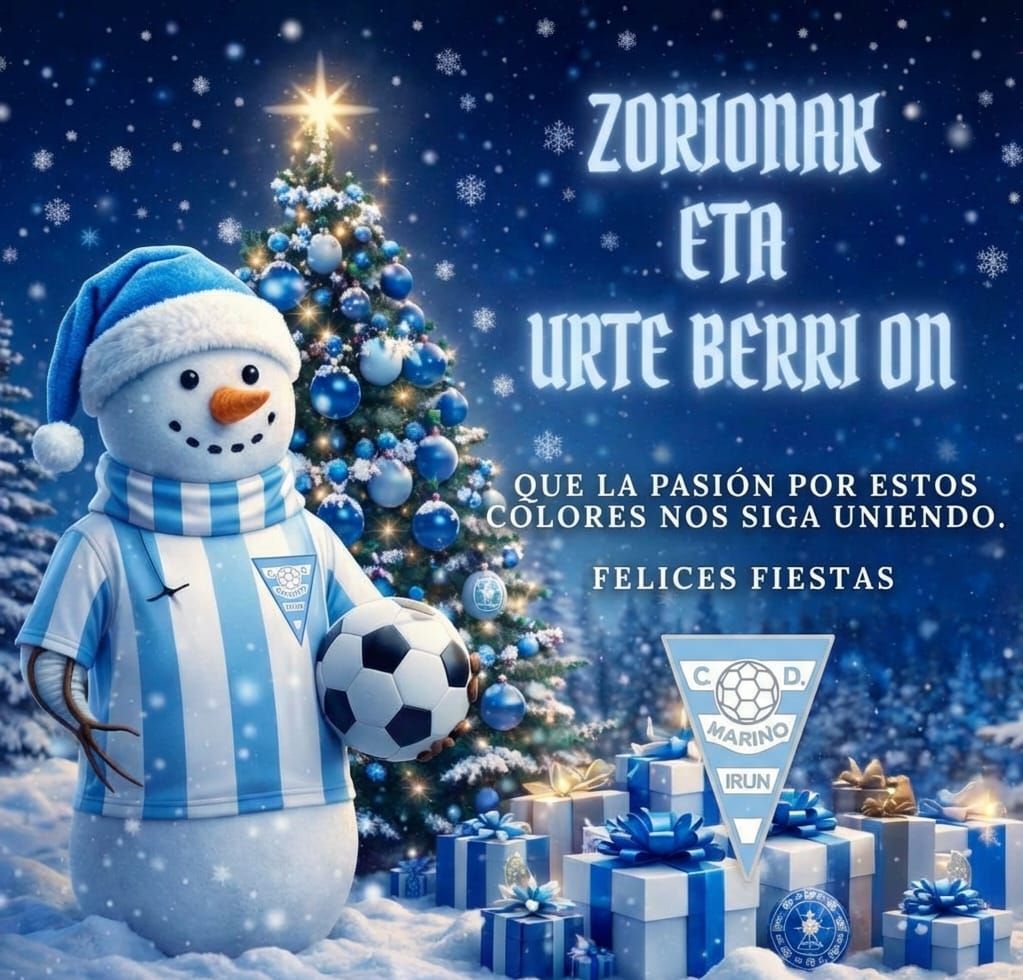 DESDE EL CLUB DEPORTIVO MARIÑO QUEREMOS DESEAROS FELICES FIESTAS. TODO LO QUE HEMOS HECHO A LO LARGO DEL AÑO NO HABÍA SIDO POSIBLE SIN EL APOYO Y EL COMPROMISO DE LOS ENTRENADORES, LA DIRECTIVA, LOS DELEGADOS, LOS JUGADORES, LAS FAMILIAS Y TODA NUESTRA AFICIÓN. GRACIAS POR ESTAR SIEMPRE, POR EMPUJAR EN LOS MOMENTOS DIFÍCILES Y POR CREER EN ESTE PROYECTO. JUNTOS ESTAMOS CONSTRUYENDO EL FUTURO DEL CLUB.