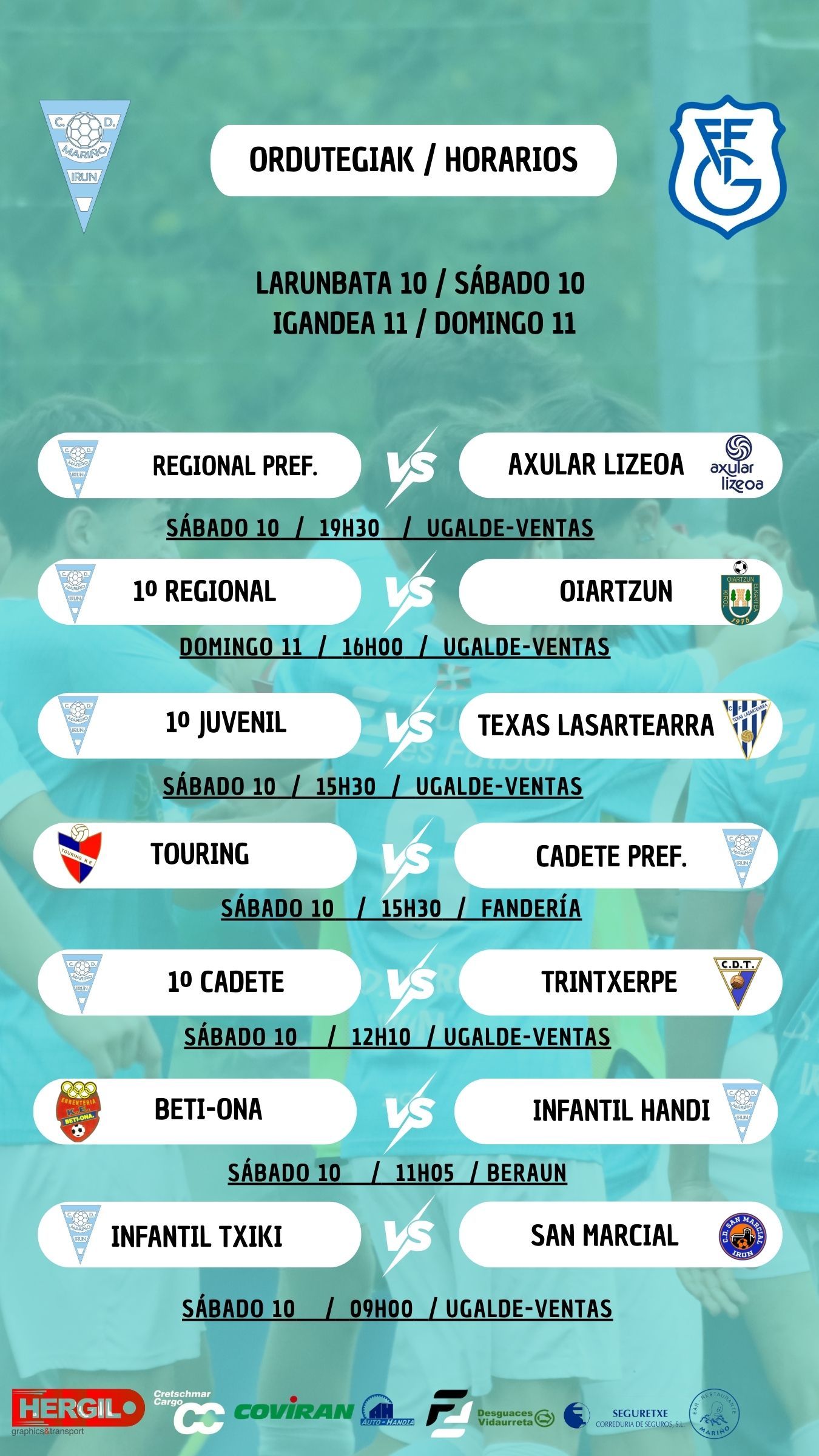 ESTE FIN DE SEMANA SE VIENE FÚTBOL DEL BUENO. NUESTRO REGIONAL PREFERENTE VIVE UN DERBI MUY ESPERADO, CARGADO DE EMOCIÓN, RIVALIDAD Y GANAS DE VICTORIA. ADEMÁS, EL RESTO DE NUESTROS EQUIPOS AFRONTAN PARTIDOS CLAVE QUE PROMETEN INTENSIDAD Y ESPECTÁCULO. TE ESPERAMOS PARA ANIMAR, DISFRUTAR Y VIVIR JUNTOS UNA GRAN JORNADA DE FÚTBOL.