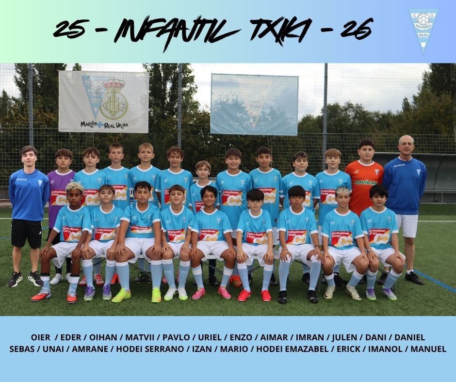 DANIEL / EDER / AIMAR / AMRANE / DANI / ENZO / ERICK / HODEI E. / IMANOL / IZAN / IMRAN / JULEN / MATVII / PAVLO / OIHAN / MARIO / UNAI /SEBAS / URIEL / HODEI S. / MANUEL ETA OIER.